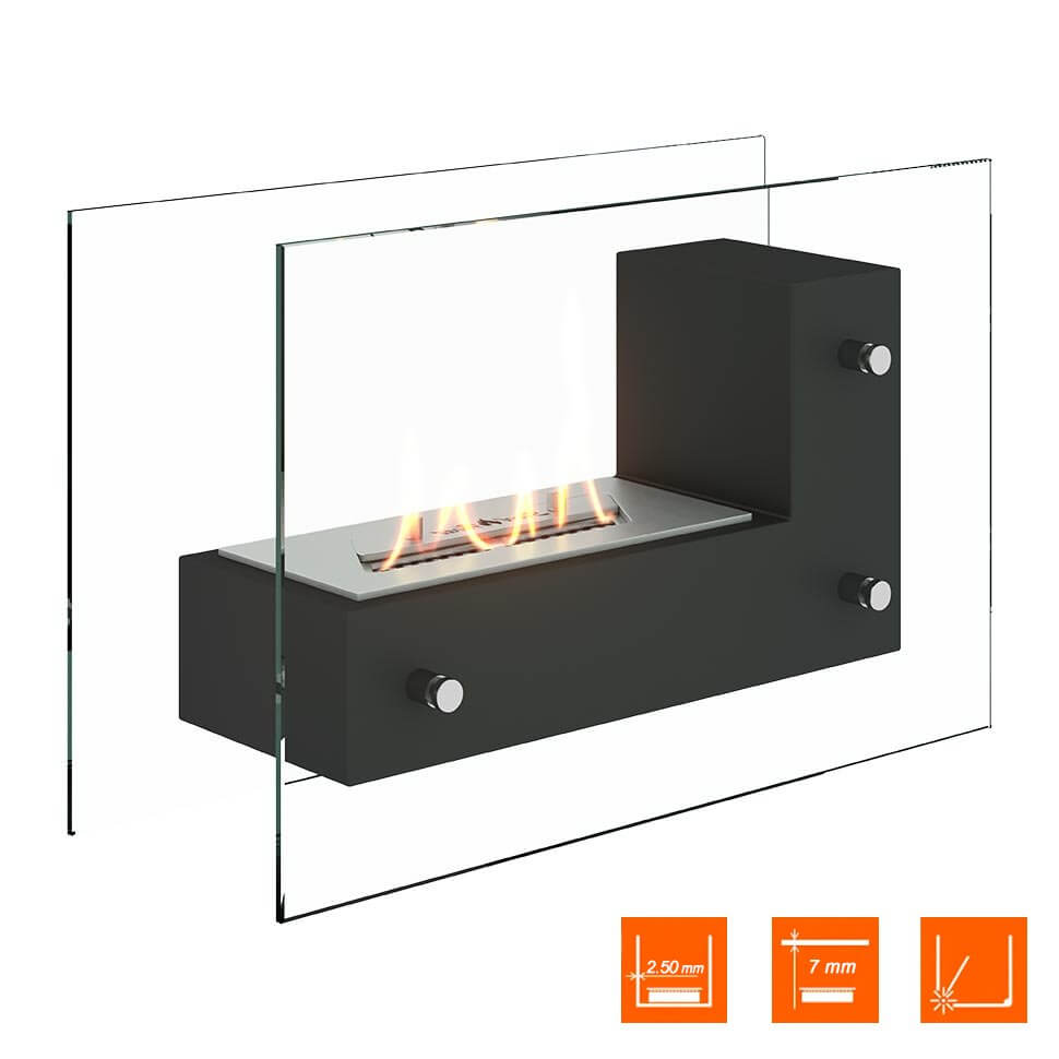 Изготовлен биокамин из нержавеющей стали, сверху покрыт стойкой порошковой краской. Изделие безопасно и экологично. Камин оборудован защитным жаропрочным стеклом, а работает он на биоэтаноле.